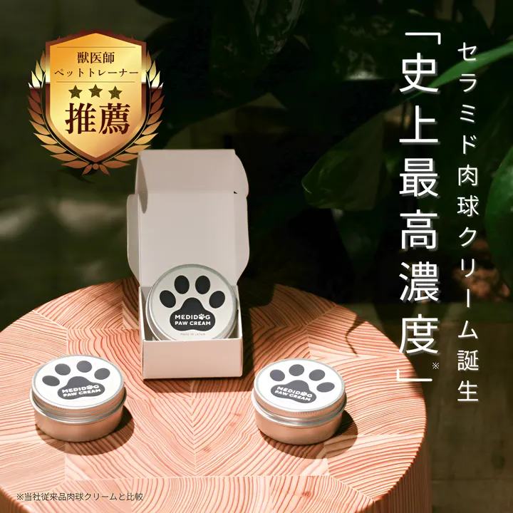 ●蜜蝋(ミツロウ)やグリセリンと違い、皮膚のし必須成分であるセラミドを配合することで、肉球を柔らかくしながら保護します。肉球の滑り止めや保護の機能があります。犬の皮膚を潤し、自己修復力の高い皮膚を育てます。