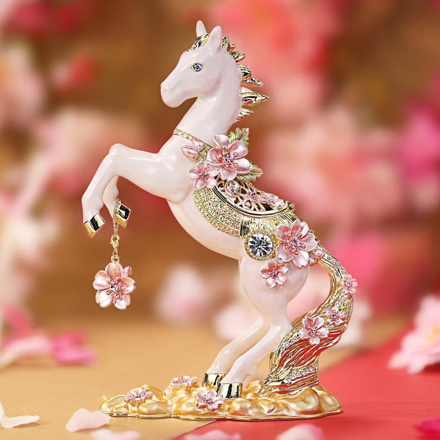 光沢ある白馬のボディに、桜モチーフをちりばめ優雅な雰囲気を演出しています。